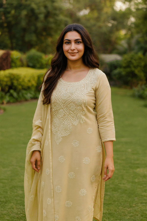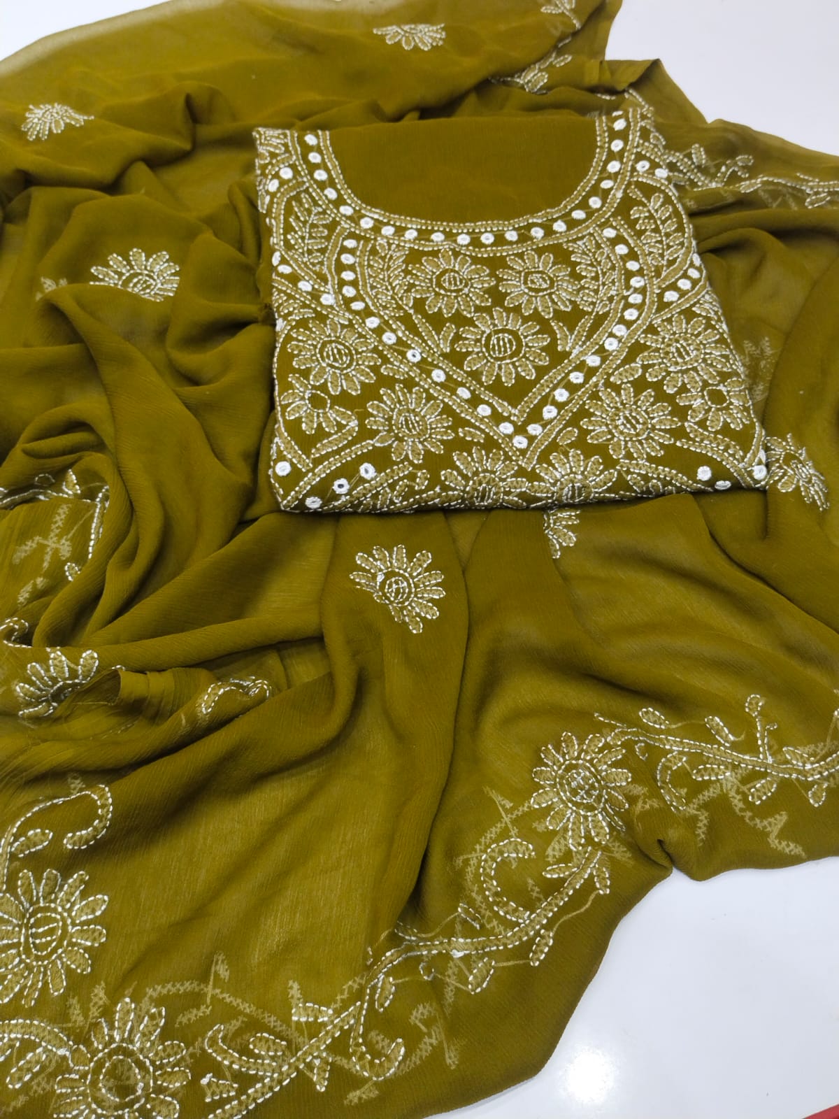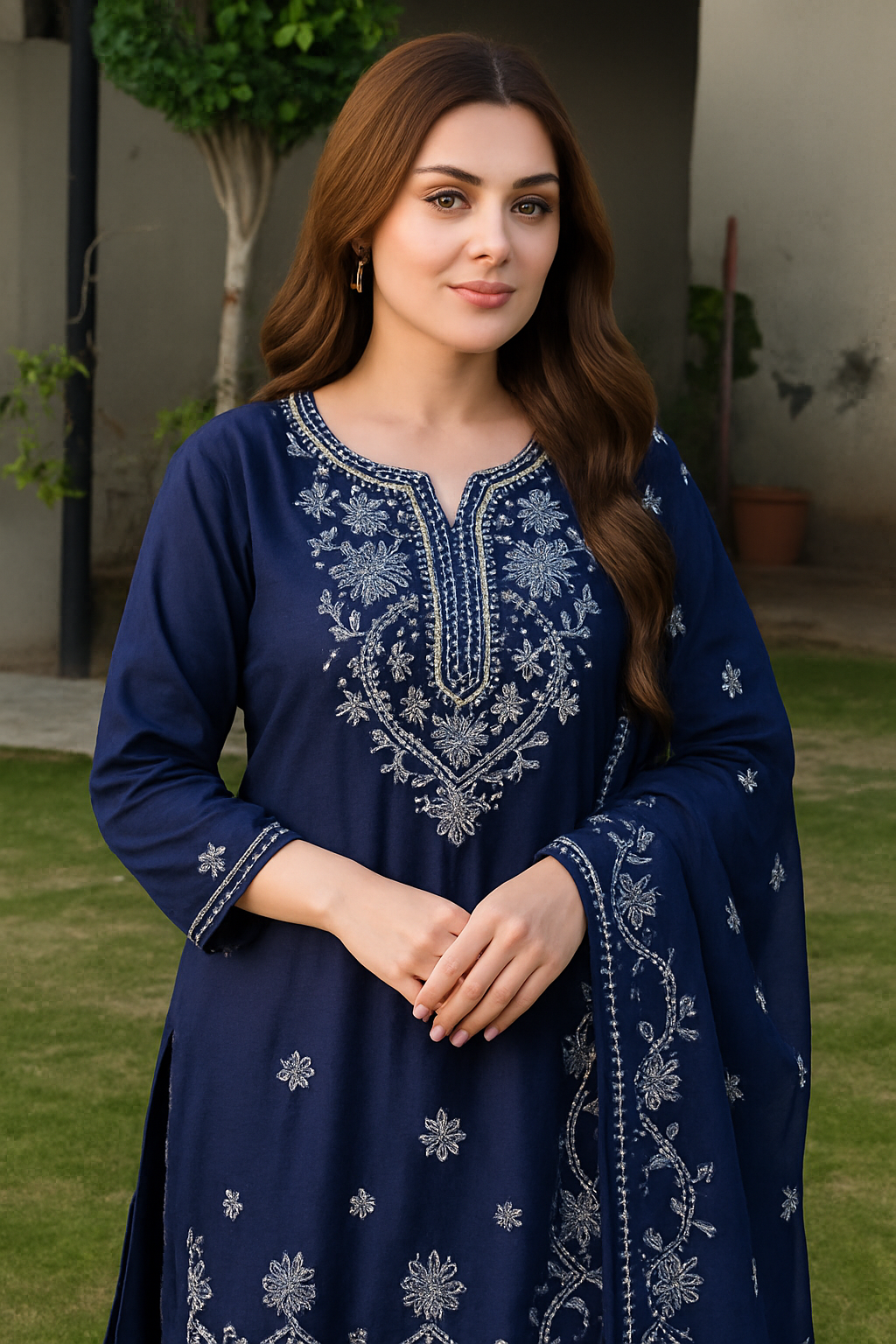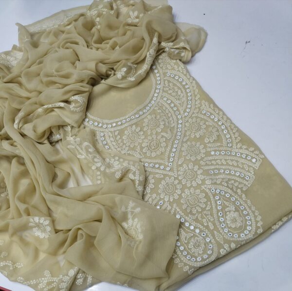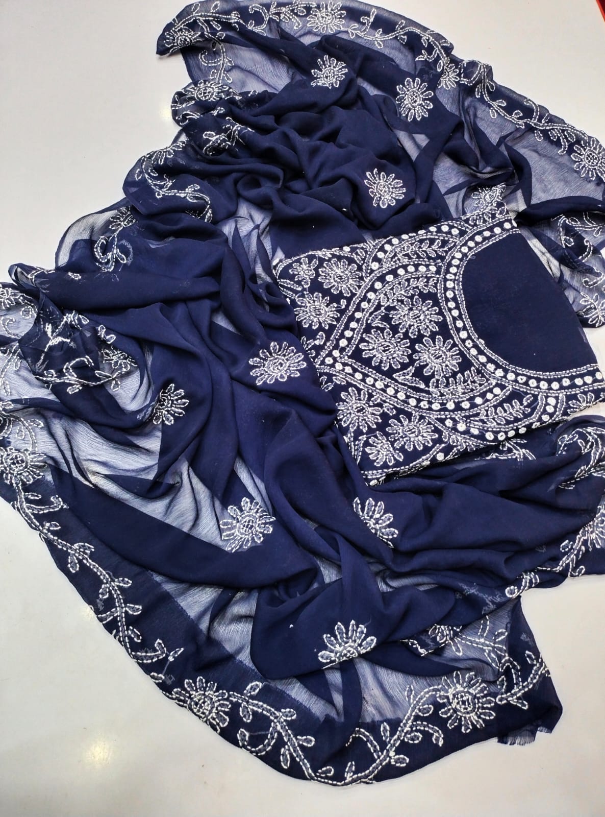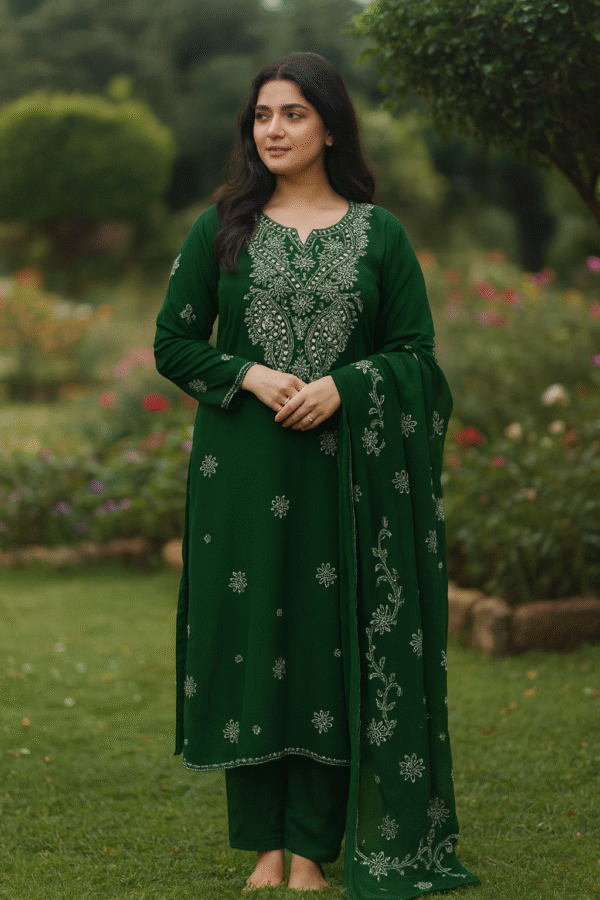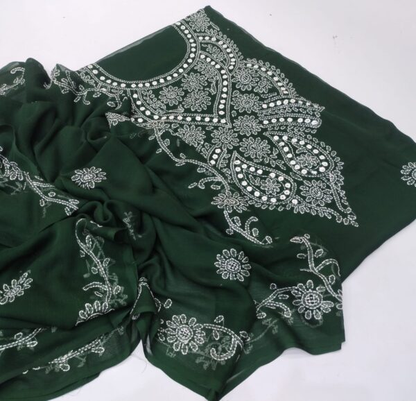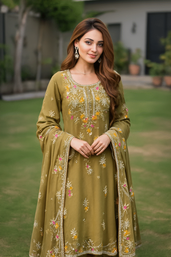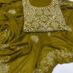 Exquisite handmade shadow sheesha work on the gala and boti for a touch of sparkle.