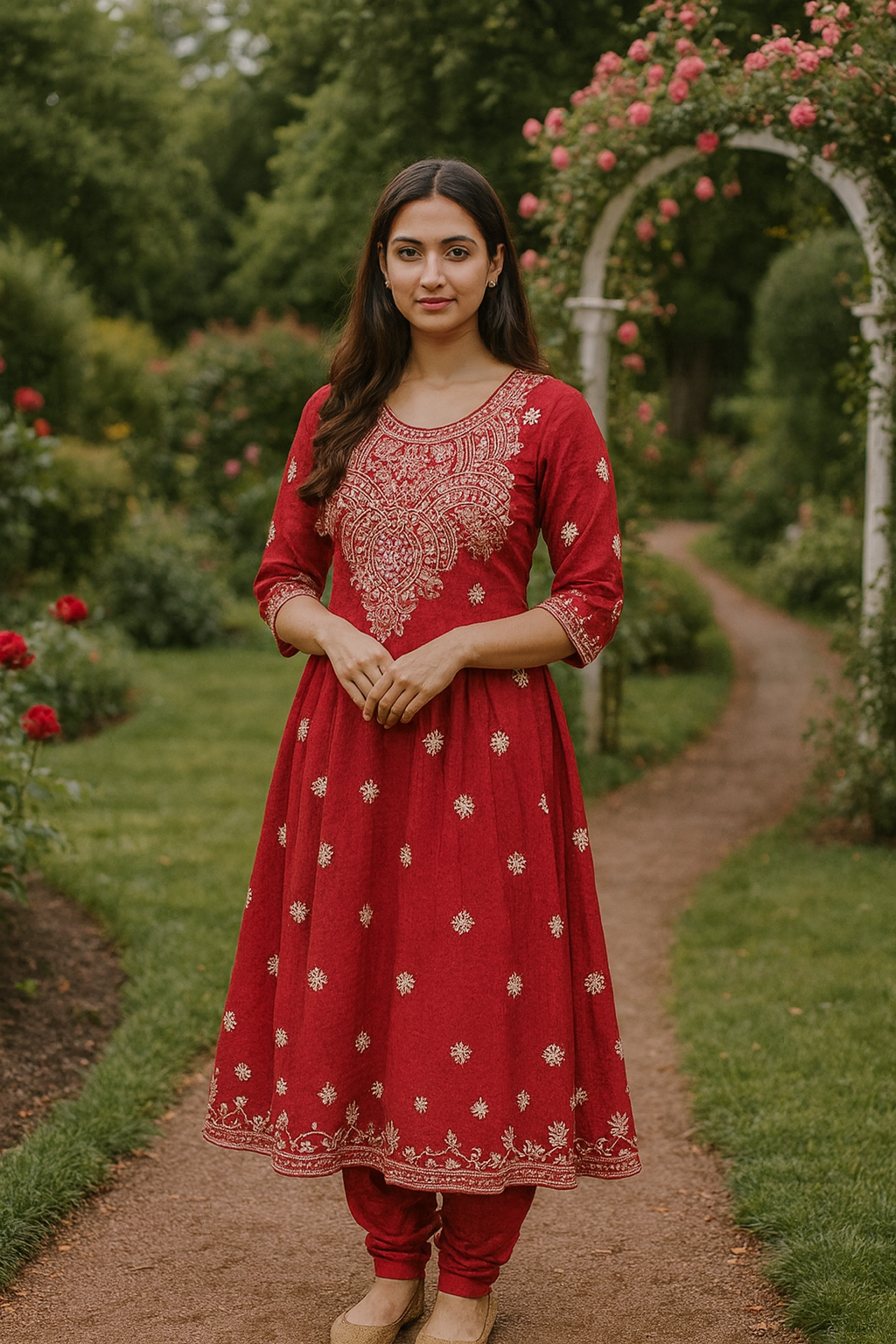 Beautifully embroidered sleeves that enhance the overall elegance.