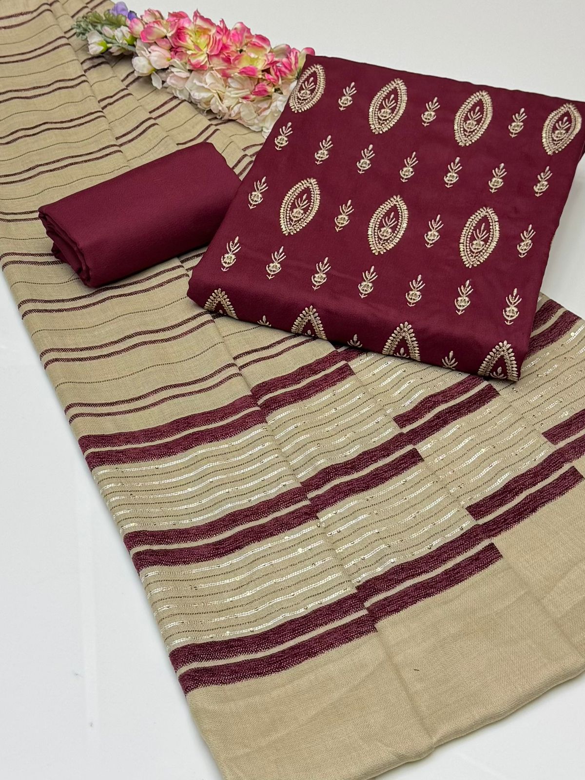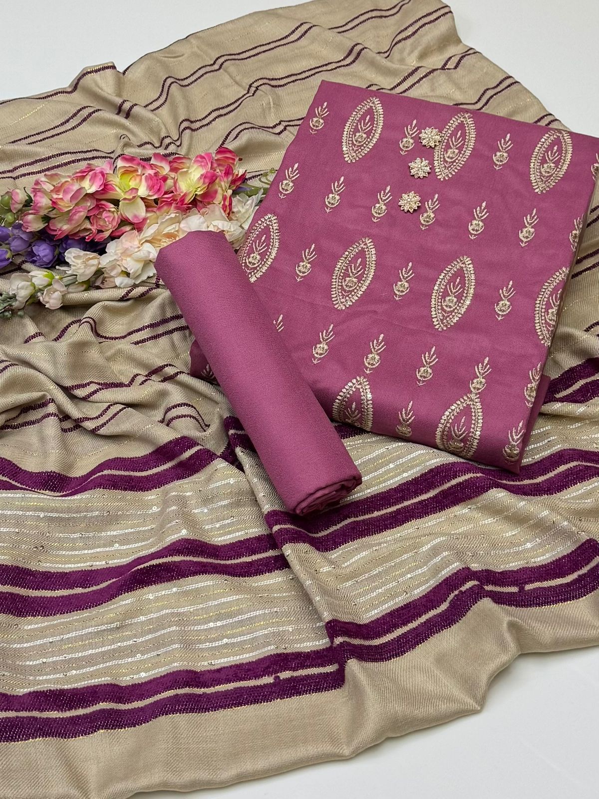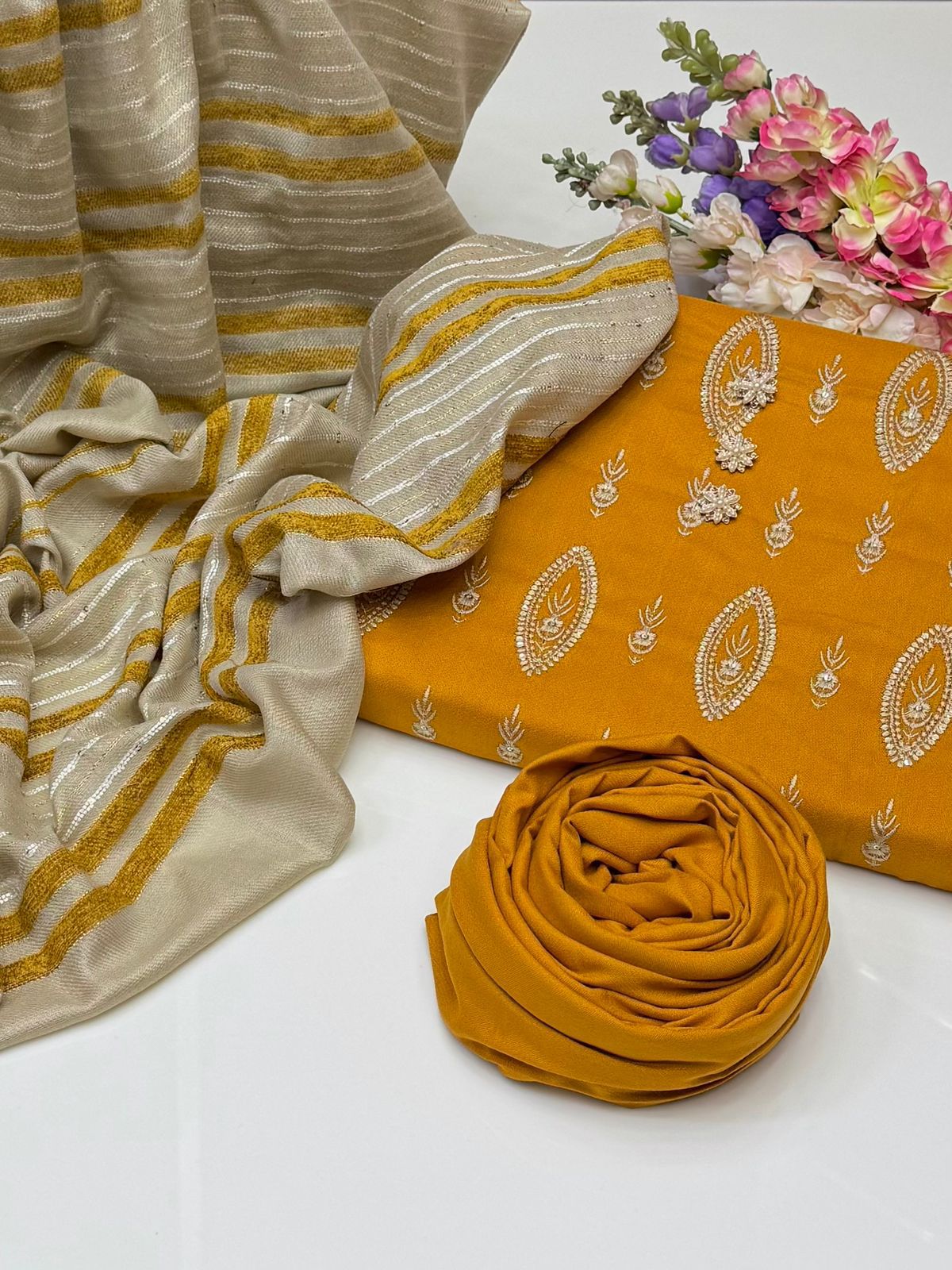 Upgrade your winter style with this beautiful and elegant Dhanak Bareeze 3-Piece Dress. The outfit features a premium embroidered thread shirt, paired with a soft plain dhanak trouser for a graceful look. Completing the set is a luxurious shawl with a velvet sequence border, adding richness and charm to your winter wardrobe.