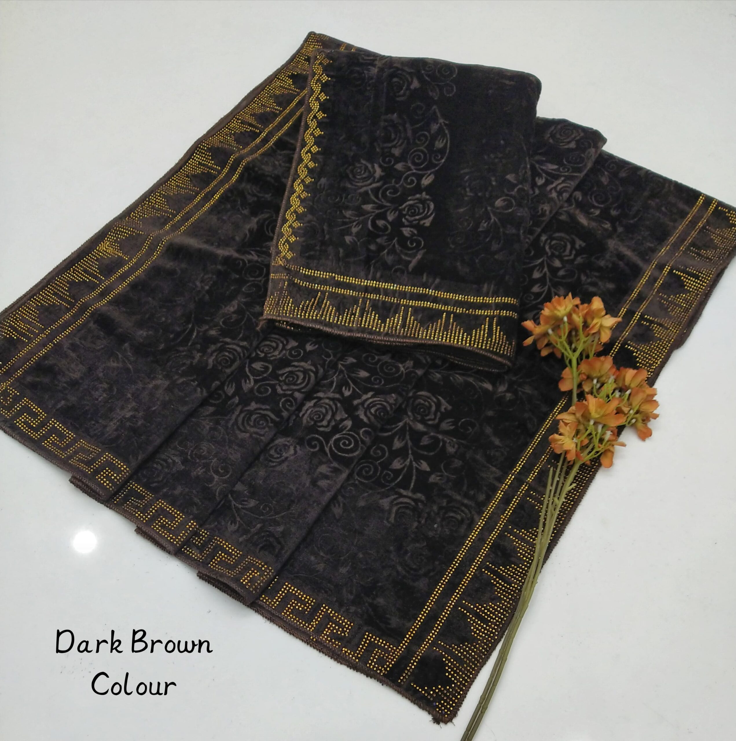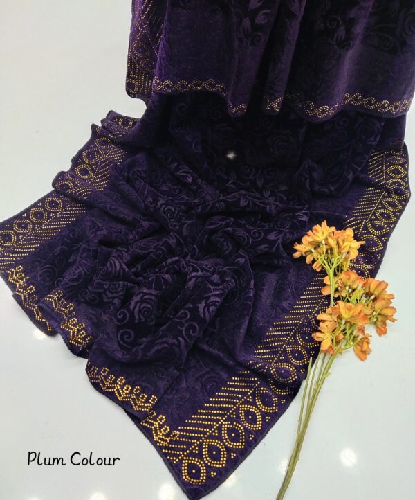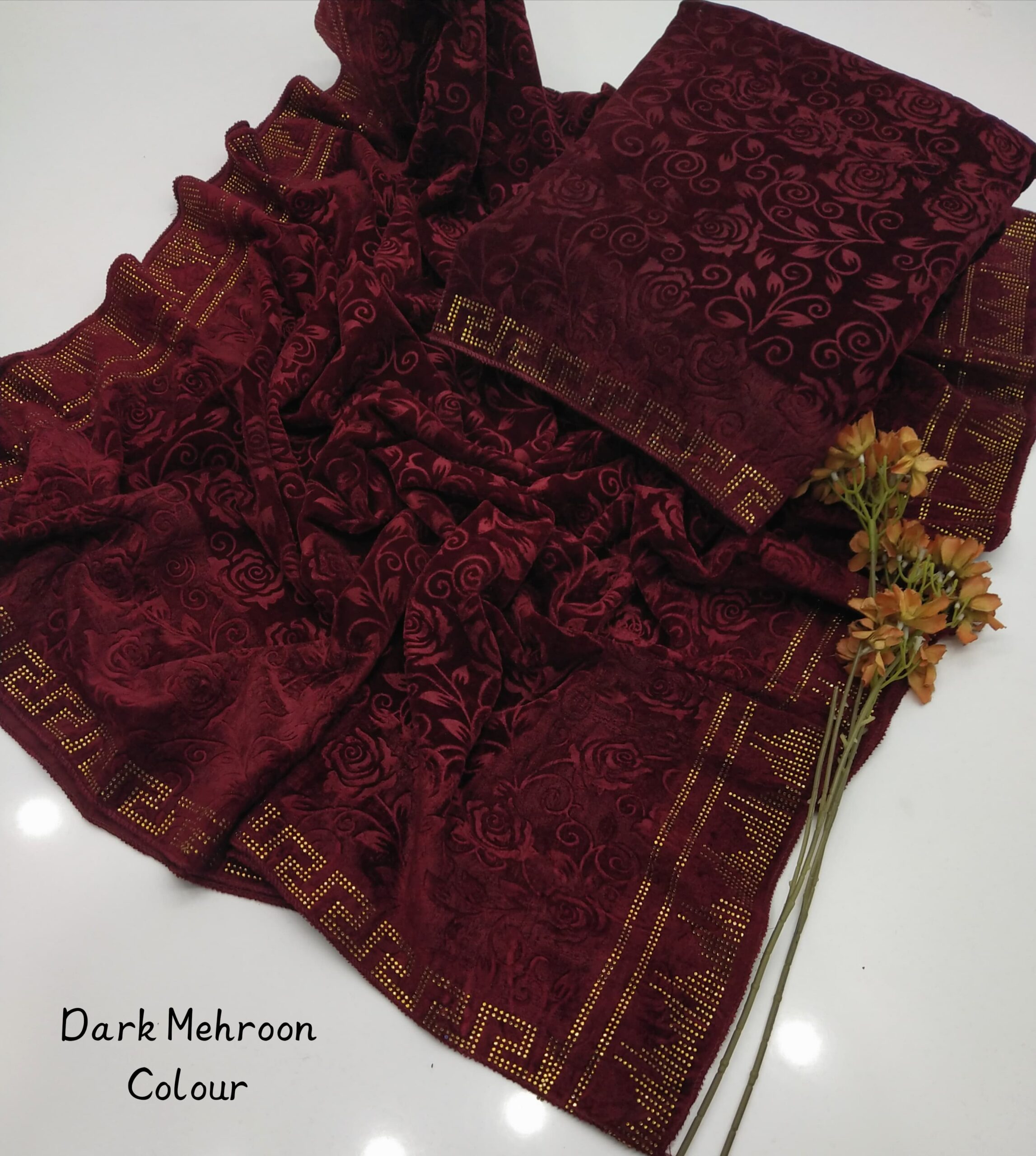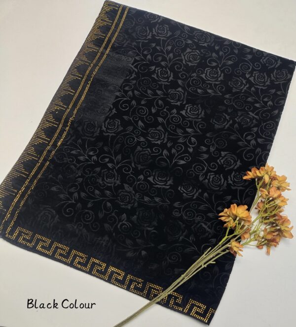 Experience luxury with this best-quality self-gegard (jacquard) velvet fabric, crafted for a rich and elegant look. The material features a beautiful sequence embroidered 4-side border, designed in the latest 2025–26 style, making it perfect for formal wear, party outfits, and designer dresses.