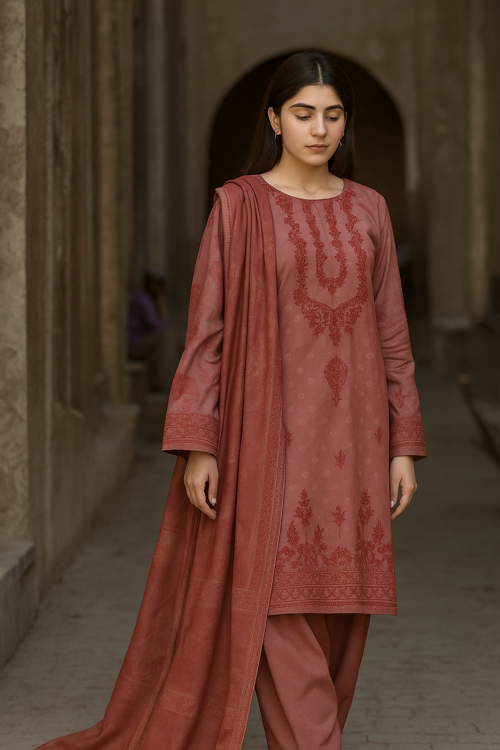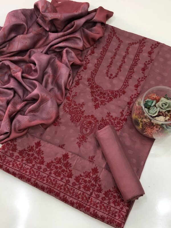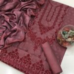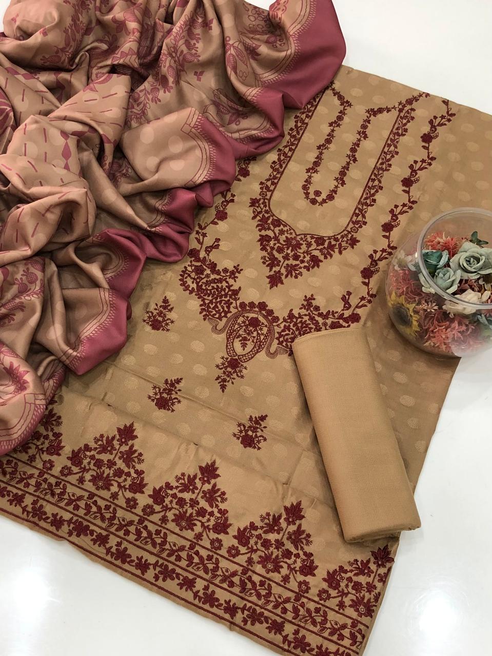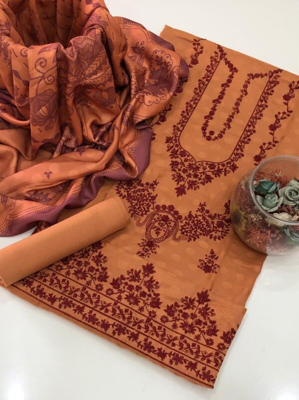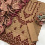 Dhanak self Premium Quality computer pakka Galla daman embroidery Shirt and dhanka plan Trouser With Dhanak digital print Shawl